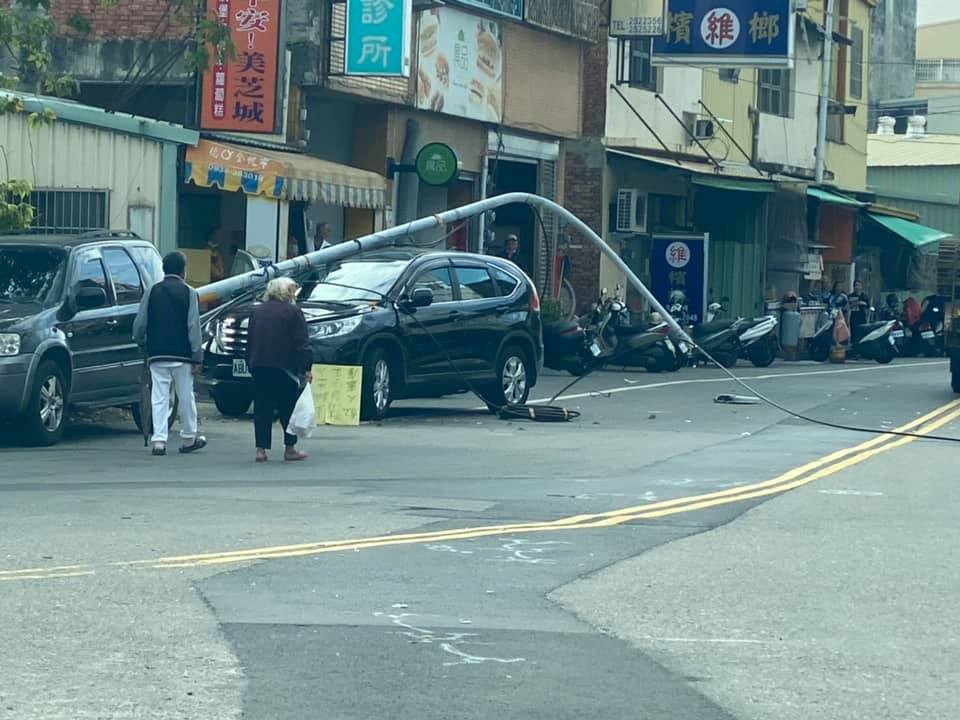 事故發生後,第一時間附近住戶都跑出來觀看,而遭到電桿砸傷車的女車主驚嚇萬分,她當時開車從南投要到彰化辦事,想說停下車正要吃碗麵,沒想到忽然間車頂轟的一聲巨響,電桿從車頂倒下,虛驚一場所幸人也無大礙,她嚇得說,真的要去拜拜了。