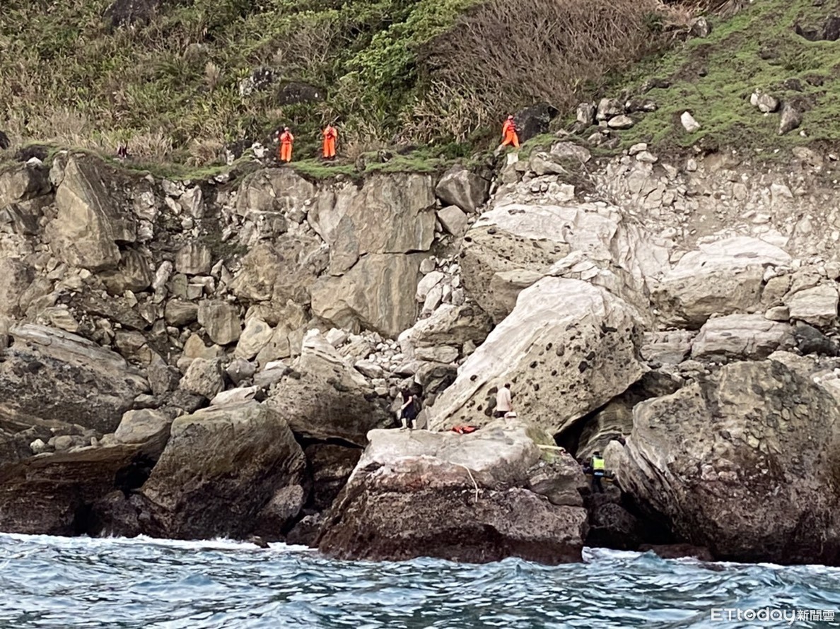▲3名釣客受困離陸面約20米的礁石上。(圖/第六海巡隊提供,下同)