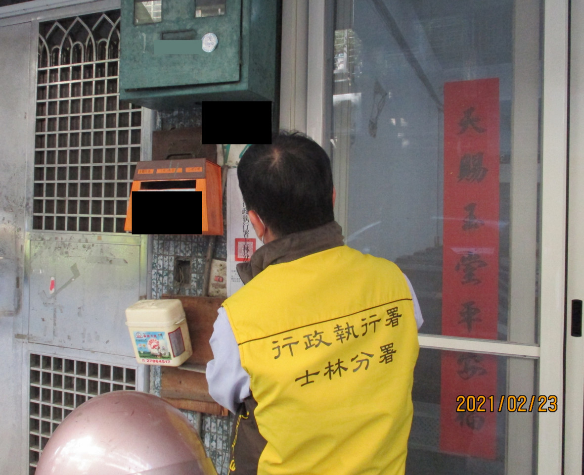 繼1月28日首波強力執行防疫案件後,執行署指示全國13個行政執行分署於23日同步針對防疫案件展開第二波強力執行。士林分署於農曆春節前後移送執行的6位義務人案件,立刻於收案後就義務人的財產及行蹤展開調查,經查得義務人名下有存款、不動產及車輛等財產者。士林分署旋即核發執行命令予以查扣外,並於今日兵分三路,由行政執行官親自帶隊至義務人戶籍址及通訊址現場執行。