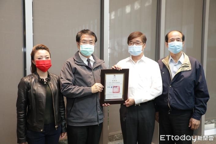 ▲亞德客國際集團捐贈台南市政府新台幣300萬元,幫助台南市300個家有兒少之弱勢家庭,台南市長黃偉哲23日親頒贈感謝狀。(圖/記者林悅翻攝,下同)
