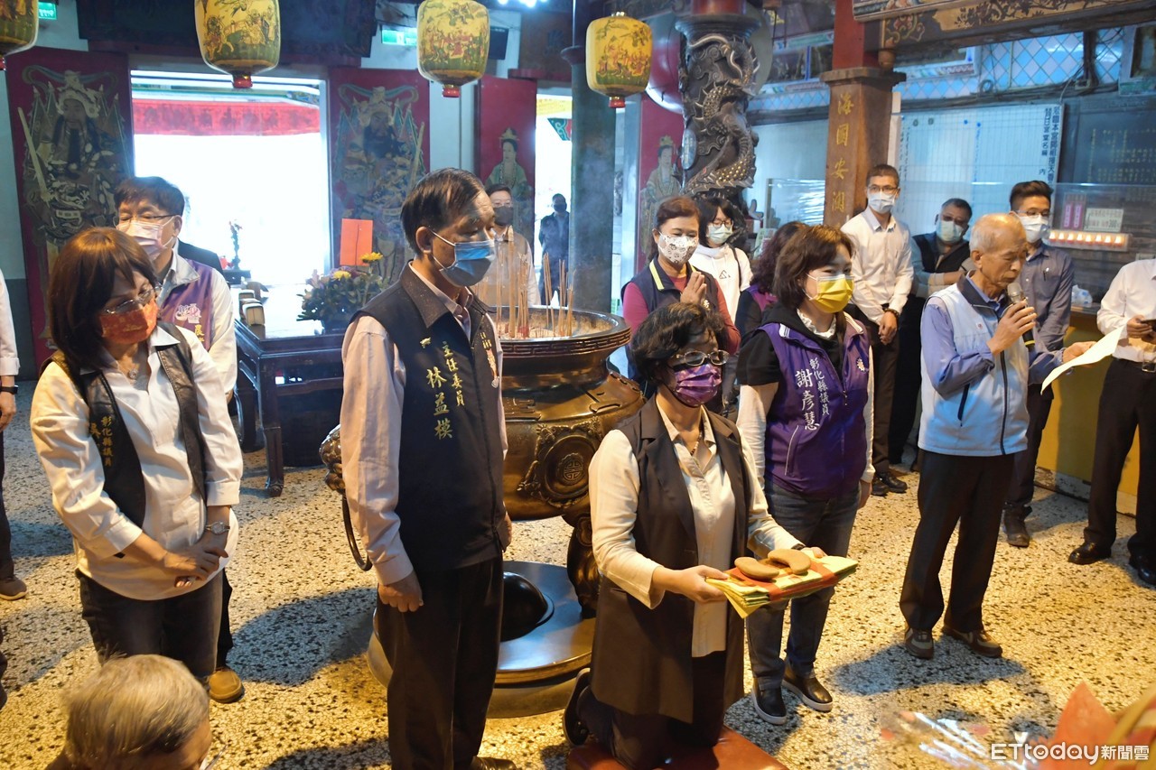 ▲縣長王惠美到福海宮為王功漁火節舉辦日期擲筊。(圖/記者唐詠絮翻攝)