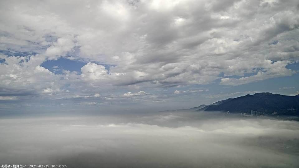 鄭明典表示,照片是觀音山硬漢嶺看到的雲海,雲頂很低,這波低海拔雲海,畫面可以看到穩定平緩的雲頂,表示混合層厚度有限,也就是空氣汙染濃度不易消散的原因。雖然照片上看起來很美,但它帶有滿滿危險。