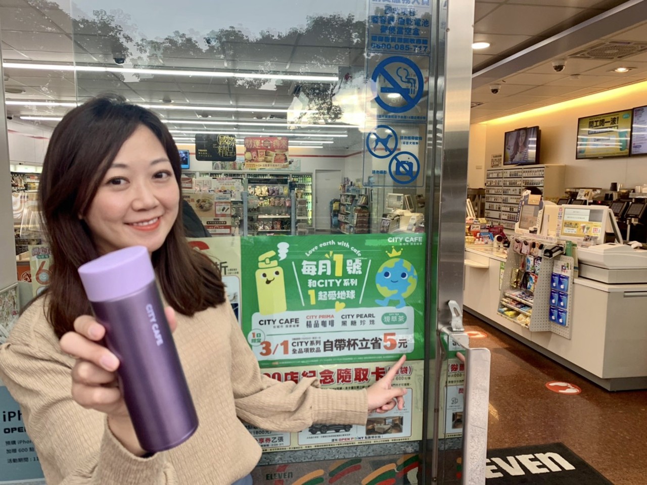 ▲7-ELEVEN自3月1日起,未來每月1日購買CITY系列飲品使用自帶杯加碼現折5元。(圖/統一超商提供)