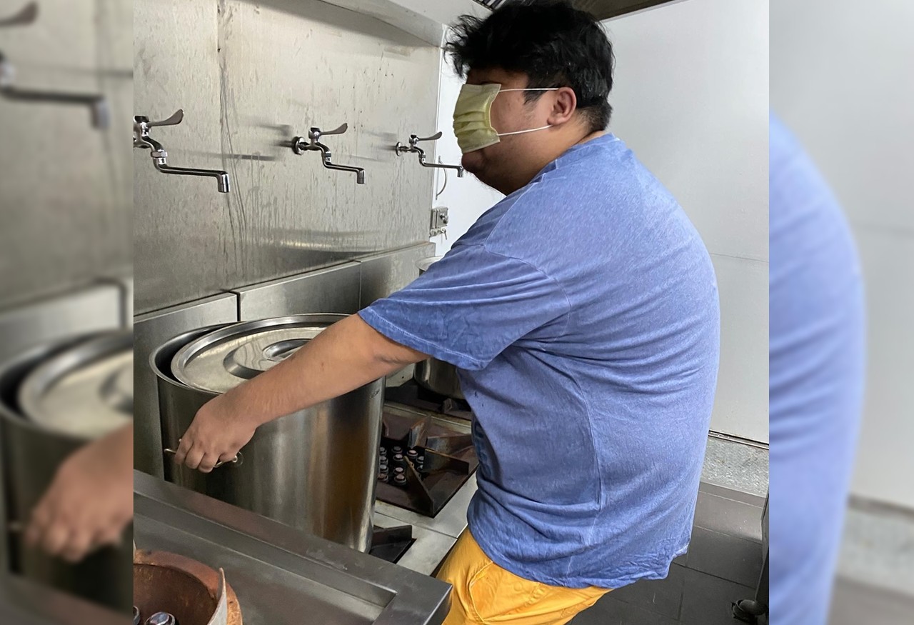 沒想到,統神的PO文附上一張照片,竟是統神在廚房內,雙手正要將超大不銹鋼鍋端起的畫面。但奇怪的是,統神刻意將口罩蓋住臉部,不肯展露他那英俊的面容,讓不少網友笑翻,也覺得等等就會像影片一樣摔倒。