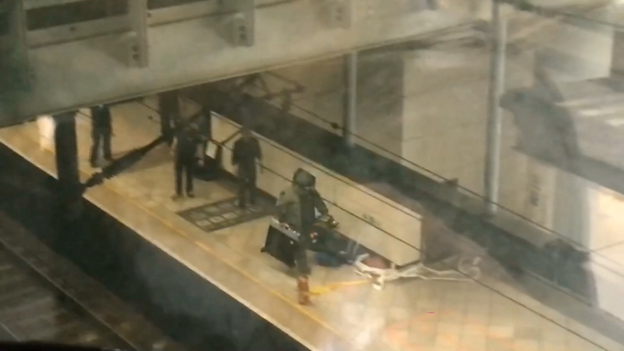 ▲一名男子在高鐵左營站聲稱有,拆彈小組全副武裝拆彈直擊。(圖/東森新聞,下同)