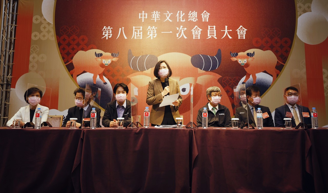 蔡英文下午偕同賴清德出席「中華文化總會第八屆第一次會員大會」,兩人分別獲得推選為新任會長及副會長。總統並揭示新團隊未來三大努力方向,強調將繼續為深耕台灣文化努力。