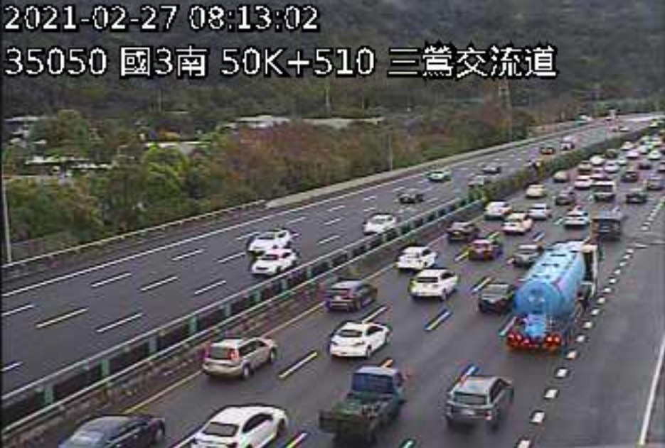 從1968高速公路網站即時影像可以看到,國道一號南下91公里、竹北交流道附近車潮湧現,時速不足20公里;國道三號南下50公里、三鶯交流道也是車輛相當多。反觀一向都會塞車的國道五號車潮卻是比預估的還少,目前時速還能維持在60公里左右。