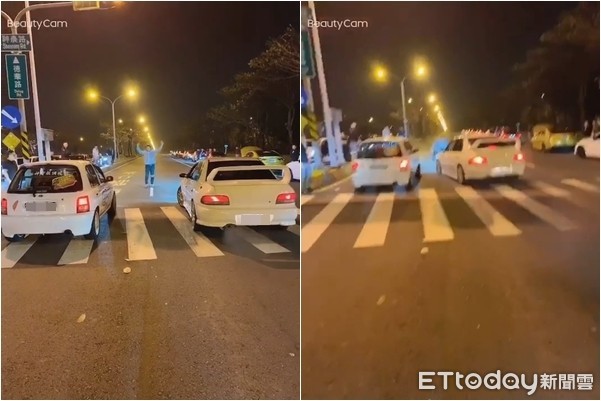 社群網路日前瘋傳一段影片,片中2部汽車於屏東農科園區封街競速,還有男子站在前方倒數、充當裁判,畫面宛若電影古惑仔;不過落漆的是,右側白車起步時,駕駛疑似未注意到方向盤打向左,還險些撞上裁判。警方為遏止飆車歪風,介入偵辦後於今(27日)將2車查扣到案,後續將進一步調查,並將涉案人等移送地檢署偵辦。