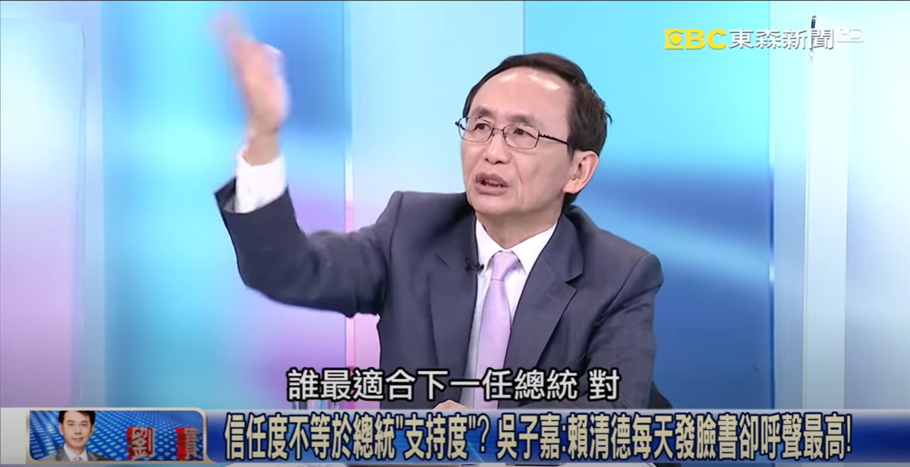 吳子嘉表示,很多媒體與學者在討論,「信任度調查不等於總統(候選支持度)」,所以他就想說「好,就做這一題!誰最適合下一任總統」,做出結果賴清德第一名,通通跌破眼鏡!