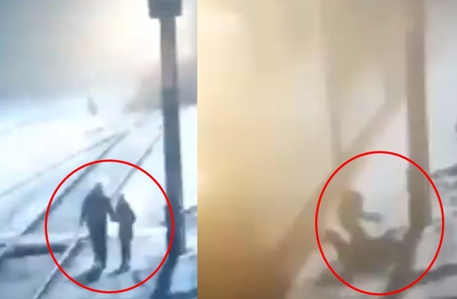 根據俄羅斯媒體《新聞研究室》報導,這名酒醉男子為節省時間,竟拉著年僅9歲的女兒穿越鐵軌。從監視器畫面中可以看到,右方一開始就已經出現火車頭的燈光,但男子依舊牽著女兒硬是要在冰天雪地中跨越軌道。當兩人成功橫越鐵軌後,男子竟又把女兒拉回鐵道旁,沿著鐵軌行走。