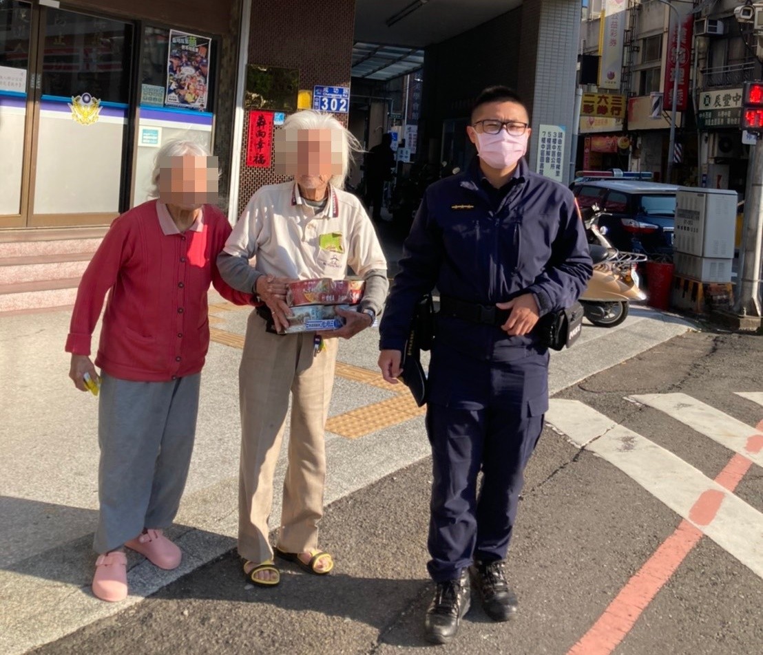 柯員問到張姓老夫妻家中地址,才知道兩人就住在200公尺外的公寓,柯員於是先拿泡麵、牛奶讓老人家果腹,然後陪同走路回家,確認安全抵達住家後,才安心地離開。