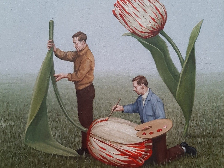 藝術家Toni Hamel 於1961年出生於義大利,目前定居加拿大多倫多的市郊奧沙華,並據此為創作基地。觀看其作品霎時,會誤從超現實主義(Surrealism)風格解讀,隨探翫畫中細節漸深,不難辨識主題針對當代社會文化現象、環境與價值觀,有著或輕或重的譏諷甚至詰難。