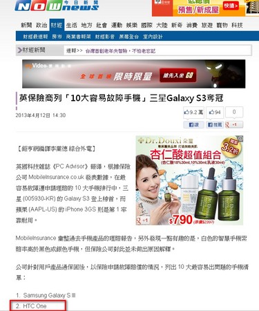英國保險公司的報告遭到竄改(原始網頁請見上圖),也讓台灣網友懷疑,背後有心人士惡意抹黑「新hTC one」。此事12日在Mobile01論壇發酵,踢爆網友直言「你可以一時欺騙所有人,也可以永遠欺騙某些人,但不可能永遠欺騙所有人。」