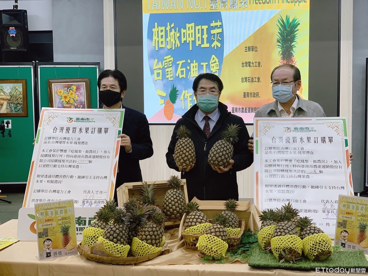 響應中央「吃鳳梨、挺農民」措施,台灣電力工會與台灣石油工會,3天在台南市政府民治市政中心簽署鳳梨訂購單,將各購買2萬5千顆及2萬顆,合計達8萬多公斤的鳳梨訂購單,台南市長黃偉哲特頒發感謝狀,感謝兩大工會加入採購鳳梨行列,以行動挺果農,成為台灣農民堅強後盾!