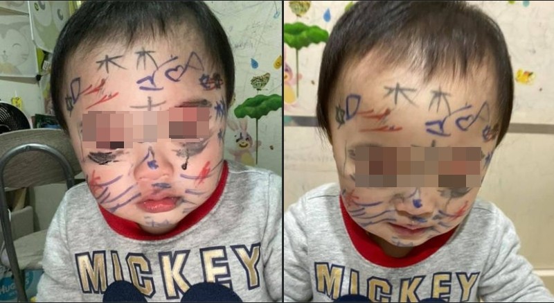 原PO在臉書社團「爆怨公社」發文指出,她洗完澡出浴室,就看見兒子被大女兒用彩色筆畫了整臉,她用乳液、卸妝棉花了好久時間才讓顏色淡掉,不過仍看得到痕跡。