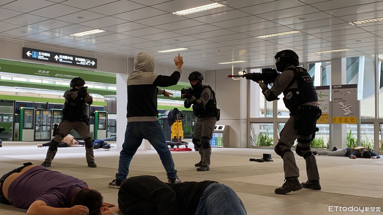 ▲台中捷運綠線舉行反恐維安暨多重災害演練,場面逼真。(圖/記者李忠憲攝)