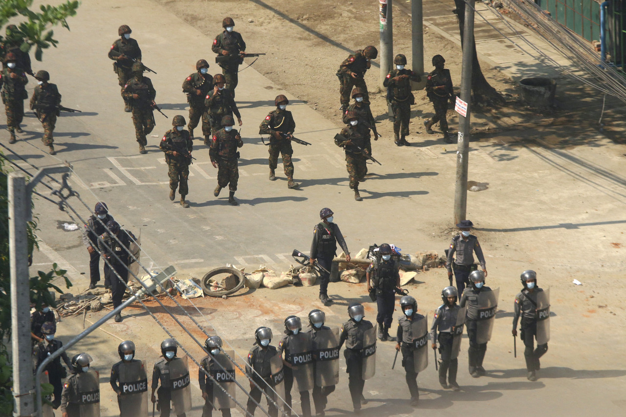 ▲緬甸鎮暴警察進駐仰光。(圖/達志影像/美聯社,下同)