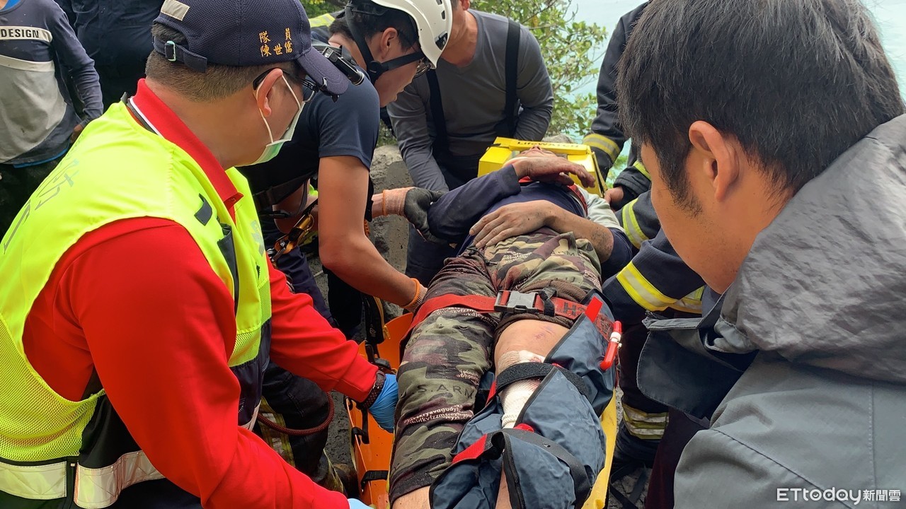 ▲警消搶救墜谷受重傷的「小山貓」許姓司機。(圖/記者游芳男翻攝,下同)