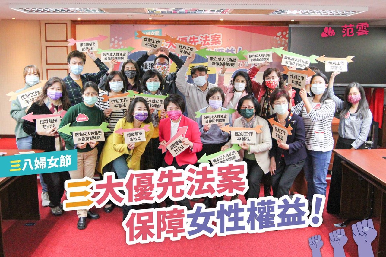 范雲強調,後續將會一起持續積極推動這女性權益三大優先法案,若能順利立法,這將會是送給所有女性最好的婦女節禮物。