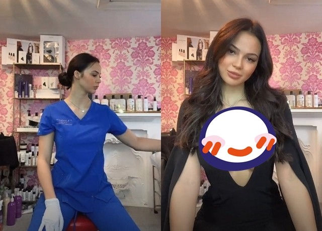 醫美護理師維多莉亞(Victoria Barrett)近日因在Tiktok上發布一段影片爆紅,她先是穿著平時在診所上班的制服,下秒變成嶄露身材的深V禮服,引起不少討論,連性感內衣廠商都因此找她業配。