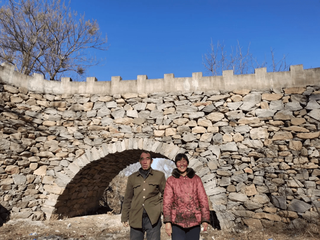 之後,趙振書先將兩個大石塊鑿成平台,壘成了幾公尺高的「牆墩」,「牆墩」中間空出,兩側各用出一堵磚牆,依托磚牆,中間搭建了木架,用木架拼出一個拱形後,再在木板上豎著砌石塊,等這些石頭砌自然合攏,並緊緊擠到一起後,再將木板抽走、磚牆拆除。他笑稱,用的都是土辦法,訣竅就是擠。