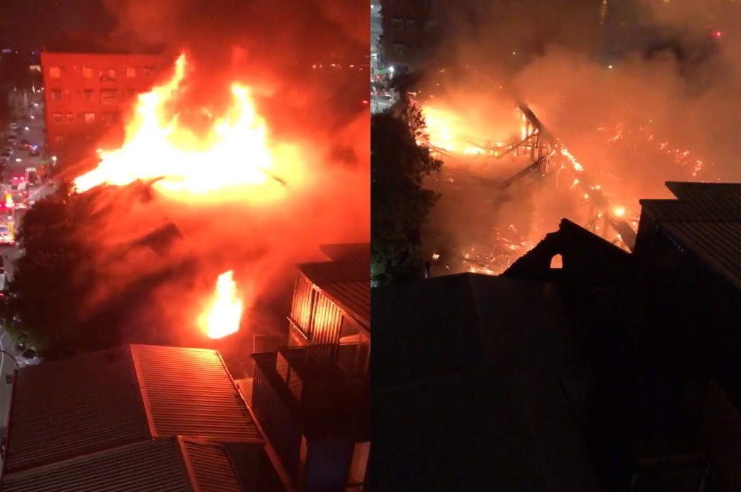 民眾目睹倉庫屋頂塌陷瞬間驚呼,「塌了、塌了、塌了。」他說,本東倉庫歷史悠久,從小看它大,「全燒光了、毀掉了、沒了。」消防局表示,該起火警無人傷亡,起火原因還有待調查。