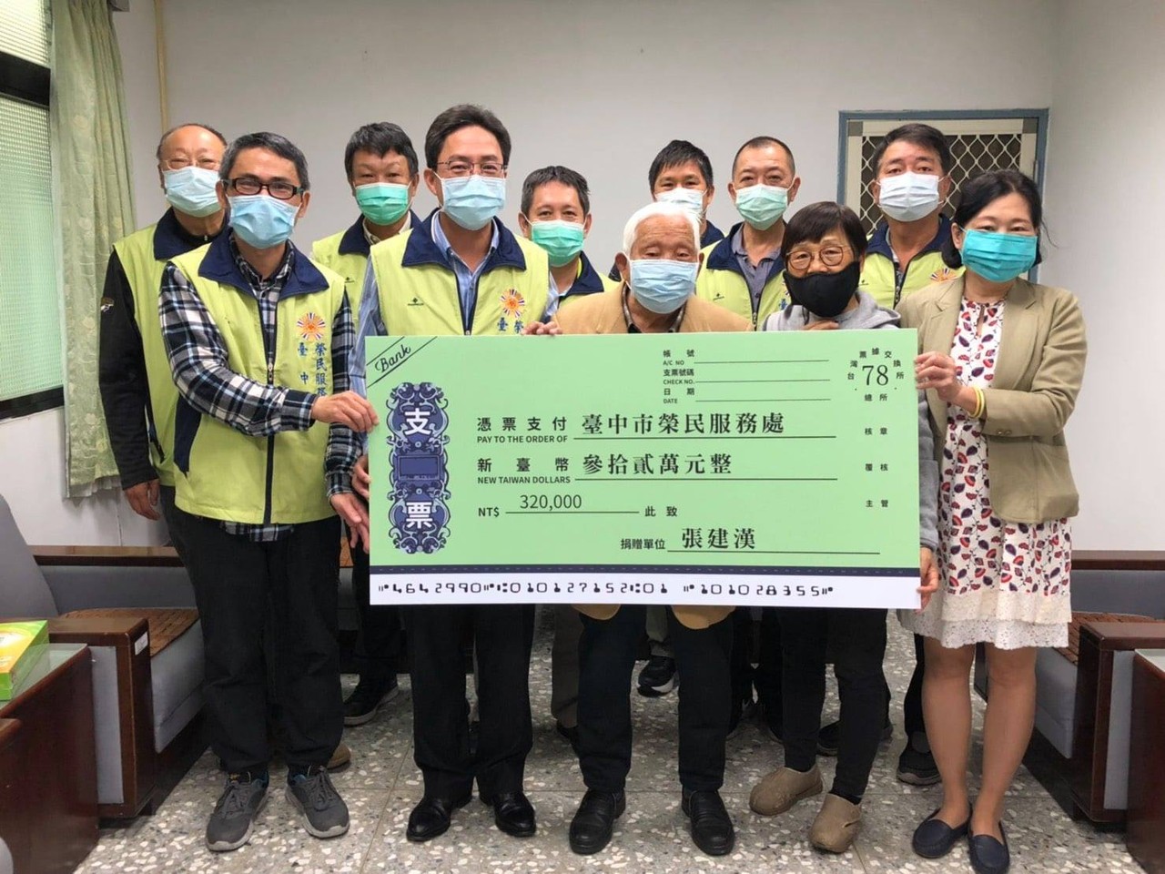 台中市92歲老榮民張建漢受到前陣子95歲老榮民余熙德捐款協助遺孤的感召,10日也捐出32萬元給台中市榮民服務處,希望能幫助更多的榮民遺孤,榮服處處長關永忠代為接受並感謝張伯伯大愛如風,無私精神,期盼更多善心人士能伸出援手,加入認養遺孤行列。
