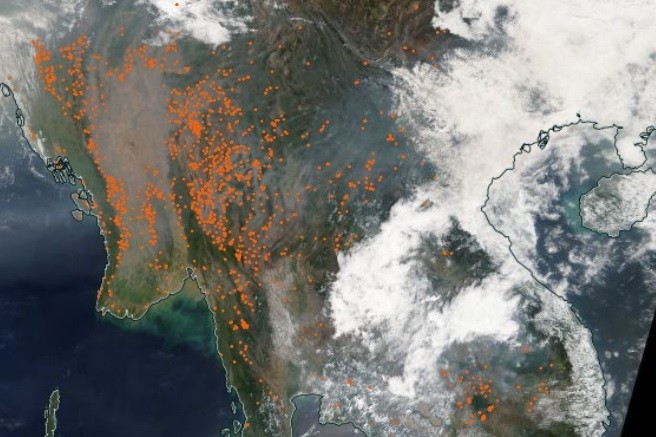鄭明典在臉書貼出衛星照片,顯示中南半島泰國、緬甸和印度東北部地區近期已經開始火耕,可能影響區域空氣品質。據悉,火耕是一種古老的農業技術,農民預先砍伐耕種區的植物等待乾燥後焚燒,藉此恢復土壤肥力,不過近代以來全球人口增加,農業進步加速輪耕週期,大規模火耕也加速二氧化碳排放,並且產生空污問題。