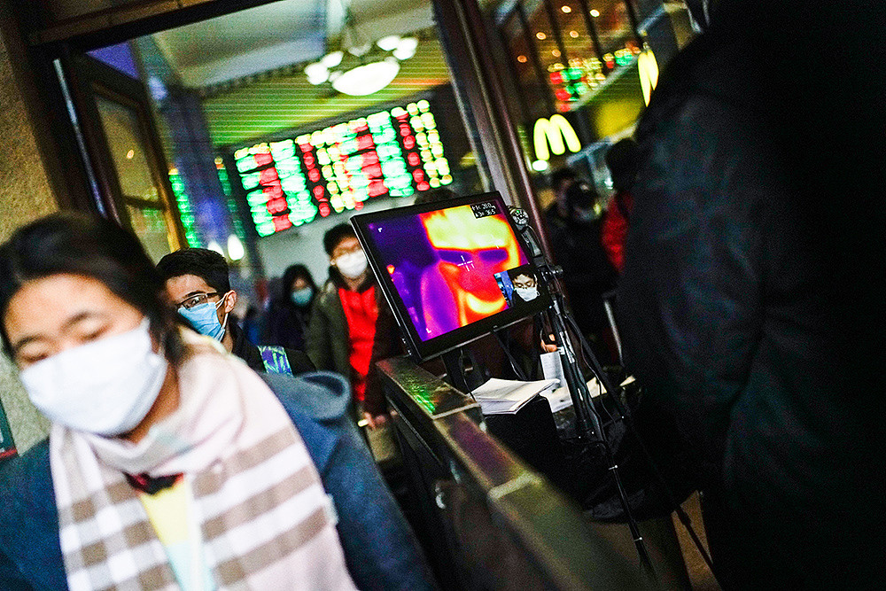 ▲民眾在北京車站排隊通過體溫篩檢站。(圖/CFP)
