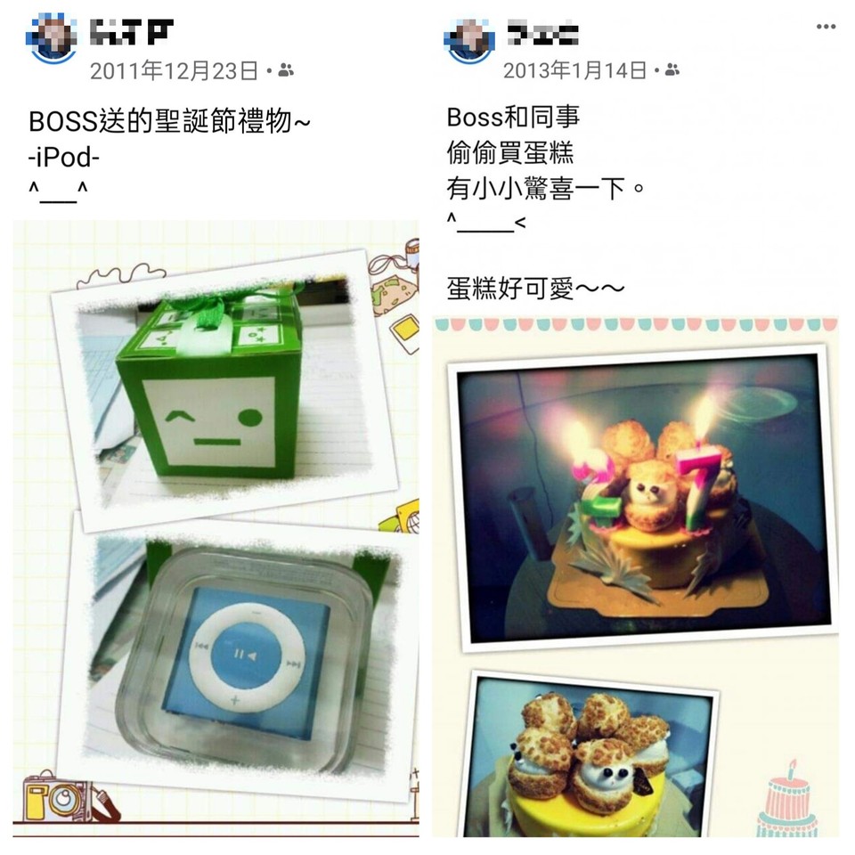 原Po接著指出,儘管已經離開這間公司8年之久,但一直記得那段日子的快樂時光,當初離職公司還幫她餞行兩次,同事也餞行了一次,如果不是人生規劃,沒打算在台北久待,這家公司她願意待一輩子。在原PO附上臉書過往的動態截圖,字裡行間都可以看出對於老闆所做的一切,是相當感動與感謝。