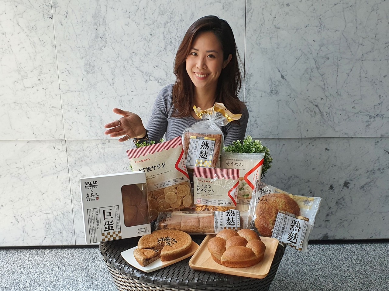 「熟麩手撕餐包」外型以花朵為底,讓濕潤度增加,口感上更能呈現湯種麵包特有的風味;「熟麩高纖香蒜麵包」嚴選台灣在地大蒜,以帕瑪森乳酪做點綴,飽滿的外餡與麥麩香、蒜香的美味結合。另外岩島成最紅明星商品「黃金巨蛋麵包」採用布里歐修麵糰,長時間低溫發酵烘焙,猶如蛋糕般柔軟,奶香濃郁。