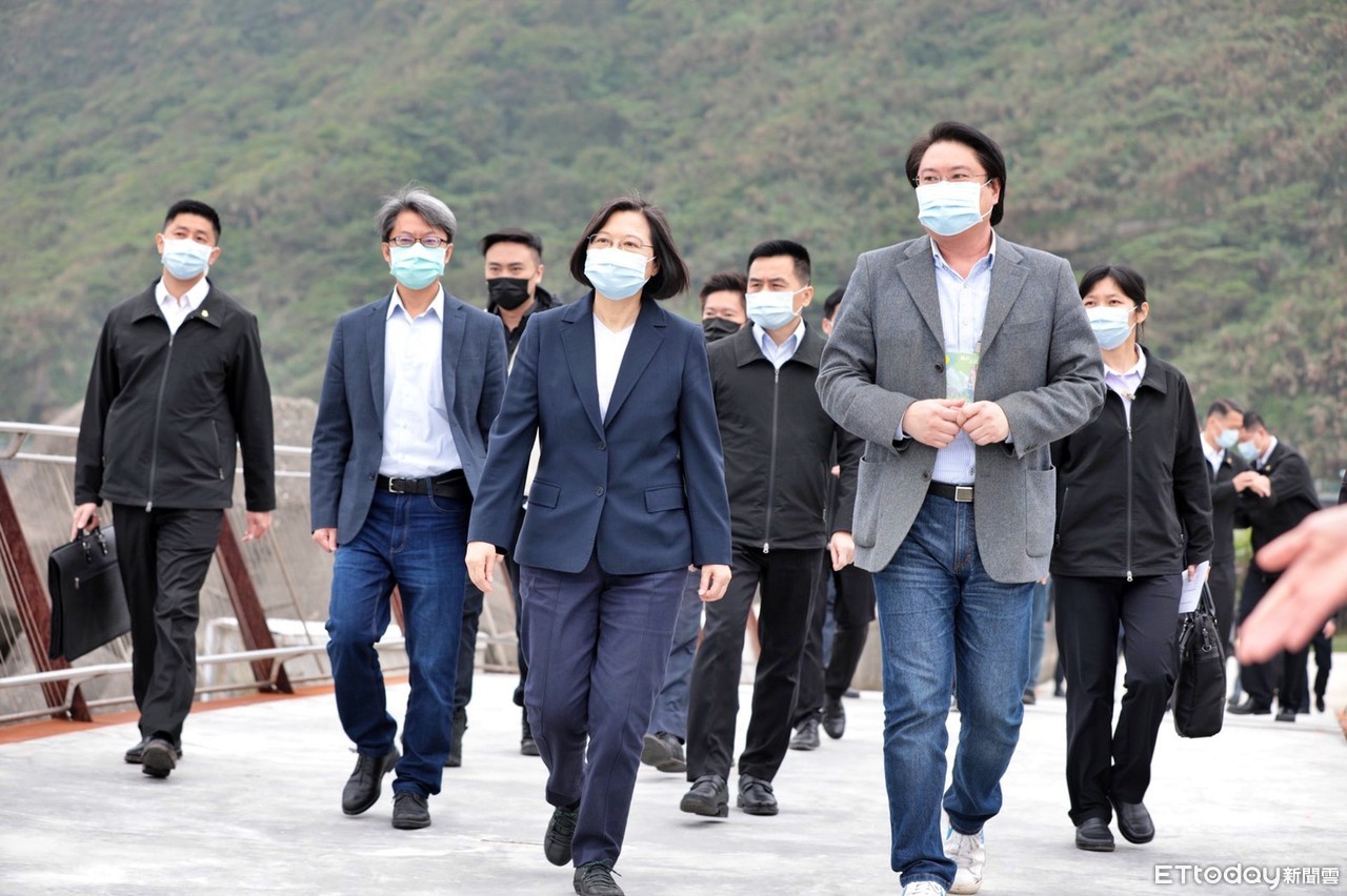 ▲基隆市長林右昌12日陪同蔡英文總統視察「望海巷海灣串聯計畫工程」。(圖/記者郭世賢翻攝,下同)