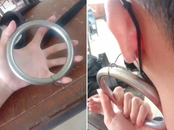 泰國夜功府(Samut Songkhram)發生一起爭議事件。一名男學生爆料,他違規打耳洞並戴耳環去上學,竟因此遭遇嚴重不當的體罰,被老師強迫在耳垂掛上巨型金屬環,穿過耳洞的鐵絲甚至已經生鏽,「我的耳朵幾乎要被扯傷」。此貼文在推特上瘋傳,許多網友砲轟,這種處罰方式實在太離譜。