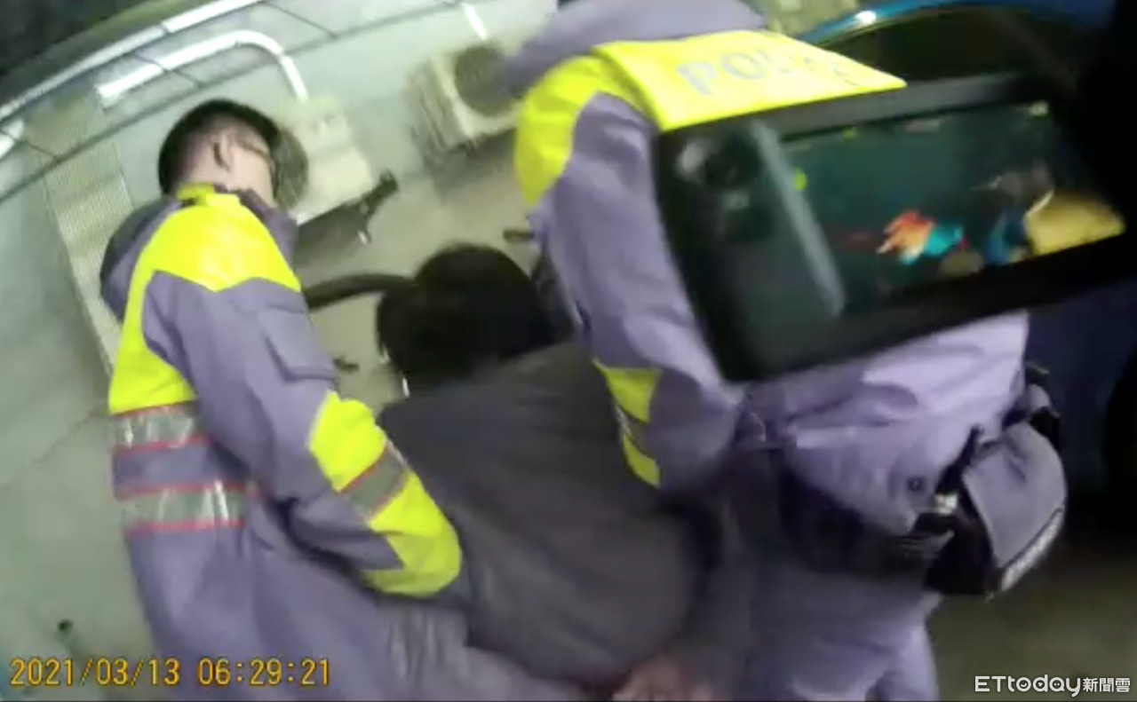 警方指出,42歲的洪姓男子,在13日清晨6時許,開著百萬奧迪名車,跑到文山一分局門口,先衝撞門口13台警用機車,又跑到停車場,撞毀2台警用機車,警方隨即將人拉下車。