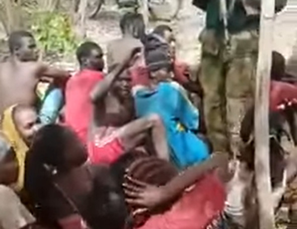 另一支影片顯示槍手手持鞭子抽打肉票,一些人哭泣哀號、苦苦求饒。