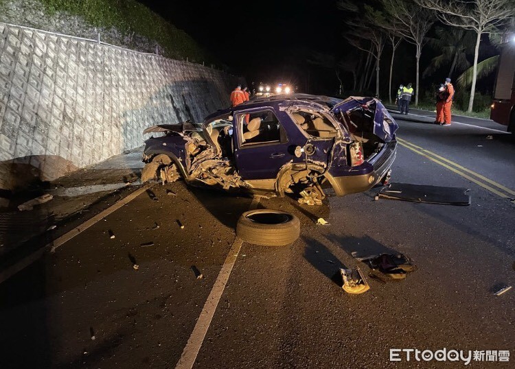 台東縣消防局表示,是在15日凌晨2時09分接獲民眾通報,事故車上一共有6人,1人經搶救後宣告不治,另外4人則分別受到輕傷、1人沒有受傷,詳細的車禍發生原因以及過程,仍有待進一步調查釐清。由於撞擊力道很大,休旅車左側輪胎全部噴飛,現場路面到處都是散落的零件、物品。
