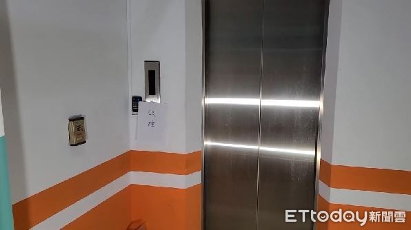 ▲電梯貼上「故障」告示。(圖/記者游宗樺翻攝)