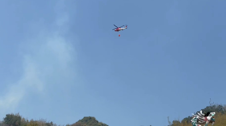 高雄市美濃區紫林寺後山山區,14日上午發生火警,天乾物燥火勢蔓延迅速,因山區水線佈設不易,加以氣候乾燥、風勢助長火勢,消防局迅速先以水線隔開民宅及果園,確保人員及財產不受威脅,並同步請求空總協助以直升機灑水滅火,14日統計出動空勤總隊2直升機灑水46趟次、投水23噸。截至晚間20時,消防局已將原本5公頃燃燒面積侷限至1公頃左右。