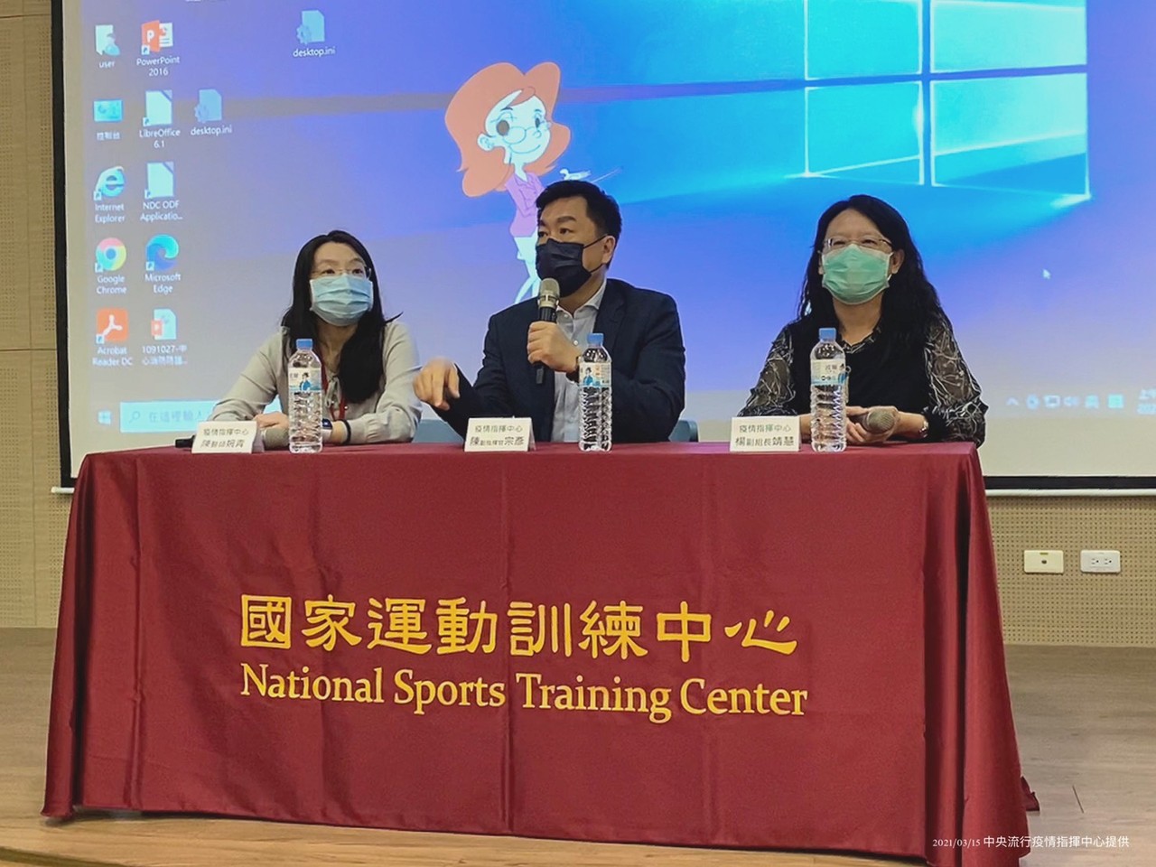 ▲防疫醫師陳婉青至國家運動訓練中心說明疫苗施打的流程與注意事項。(圖/指揮中心提供)