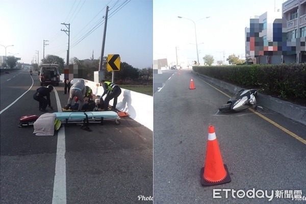 ▲苗栗苑裡自撞車禍,騎士送醫不治。(圖/記者黃孟珍翻攝)