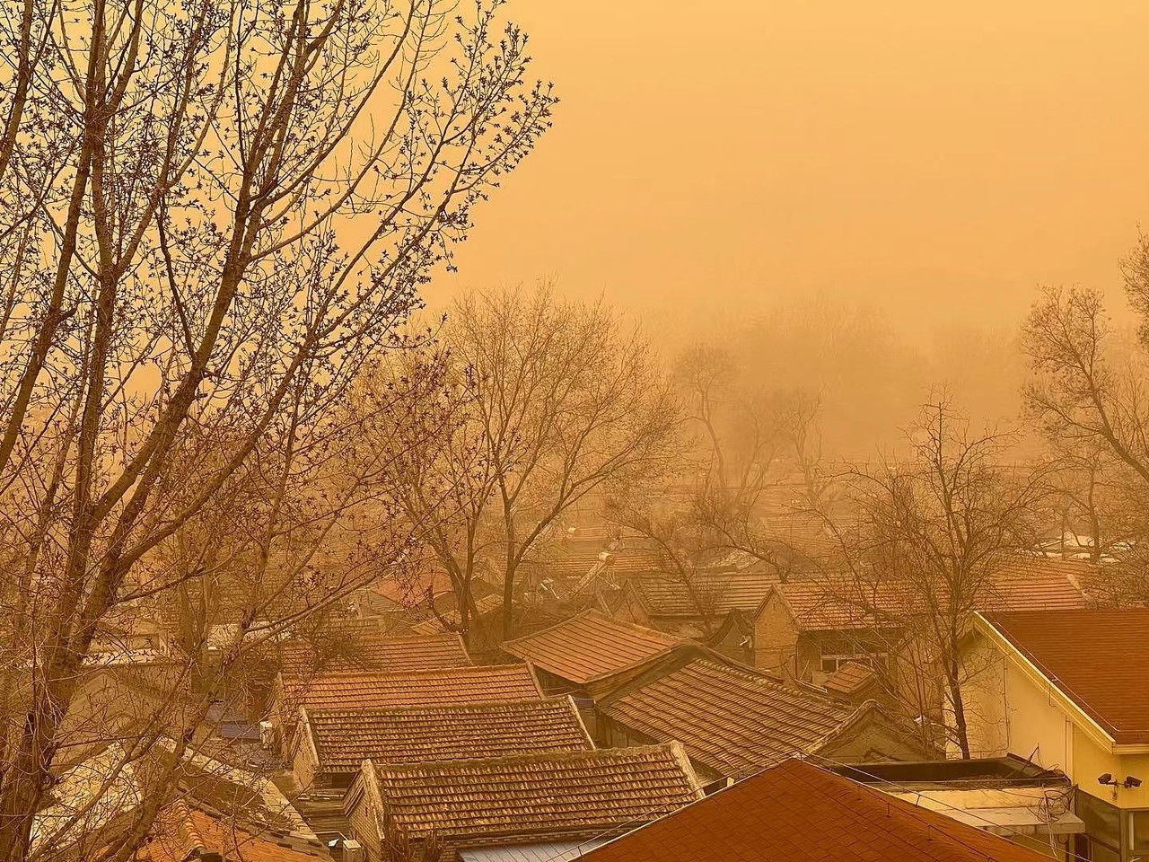 ▲北京受10年最大沙塵暴影響,景觀呈現一片黃色。(圖/CFP)