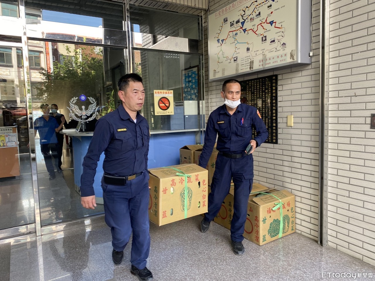 ▲高麗菜價崩,台南地院退休書記官潘敏捷慷慨認購2300斤,贈送員警和弱勢戶。(圖/民眾提供)