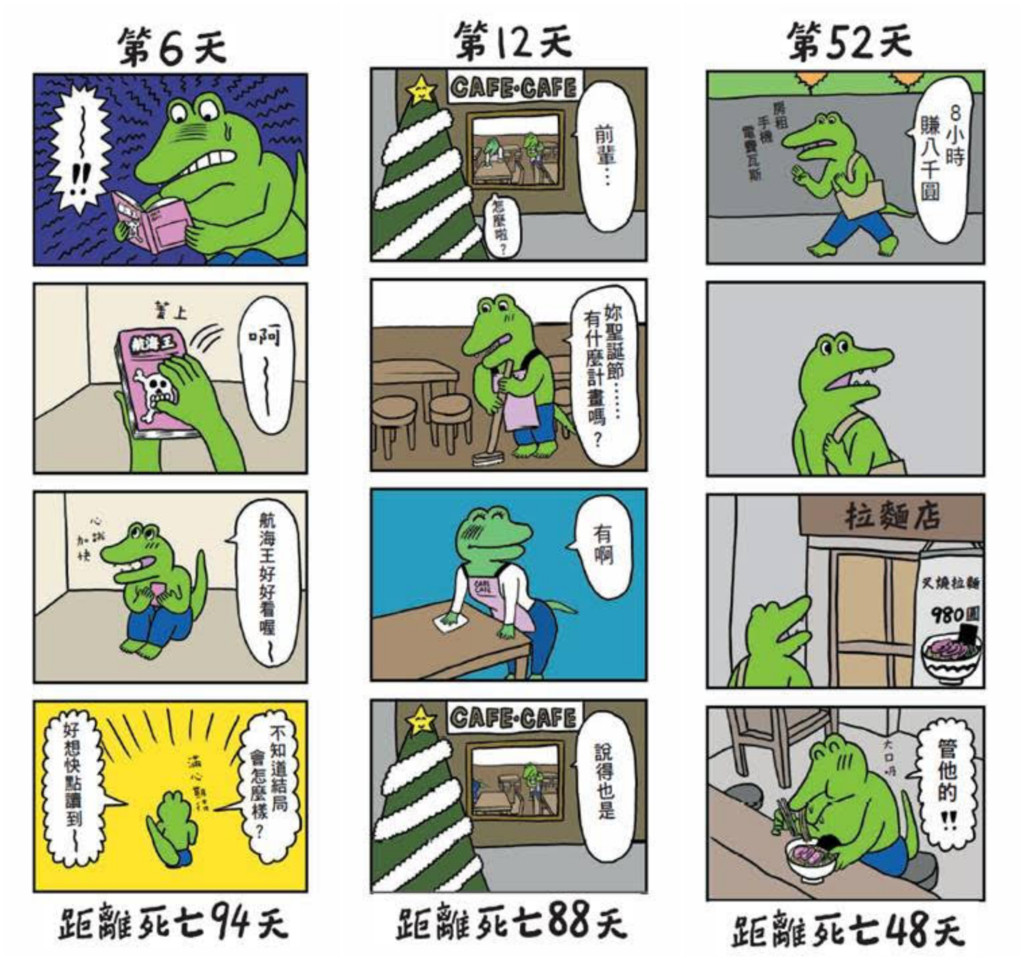 「現象級爆紅鱷魚」來台!日本漫畫家 Kikuchi Yuuki曾在Twitter上連載「100天後就會死的鱷魚」(100日後に死ぬワニ),連續100天分享「鱷魚阿綠」的日常引發話題,總共累積超過1千萬個讚,去年3月大結局更逼哭網友。而漫畫也集結成書《100天後會死的鱷魚》出版第一個月就在當地銷售破40萬冊,如今繁體中文版發行來台。