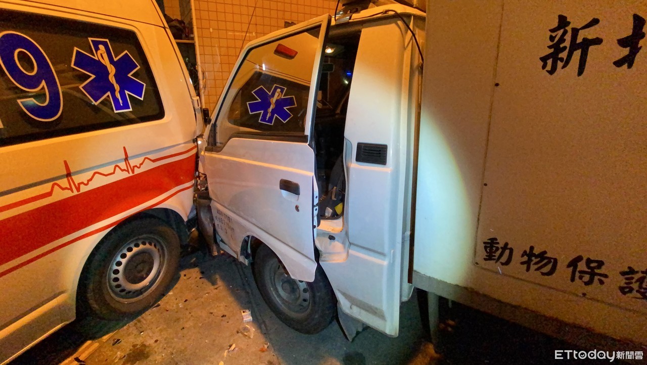 新北市五股區18日凌晨4時許,一輛洗衣場的小貨車行經工商路時,駕駛疑似低頭撿東西,整輛車當場偏離道路,把路邊一輛動物管制車撞進路口的新北市消防局五股分隊,造成2輛救護車、1輛災情勘查車受損,警消粗估維修費約10萬元,確切事故原因及肇事責任有待調查釐清。