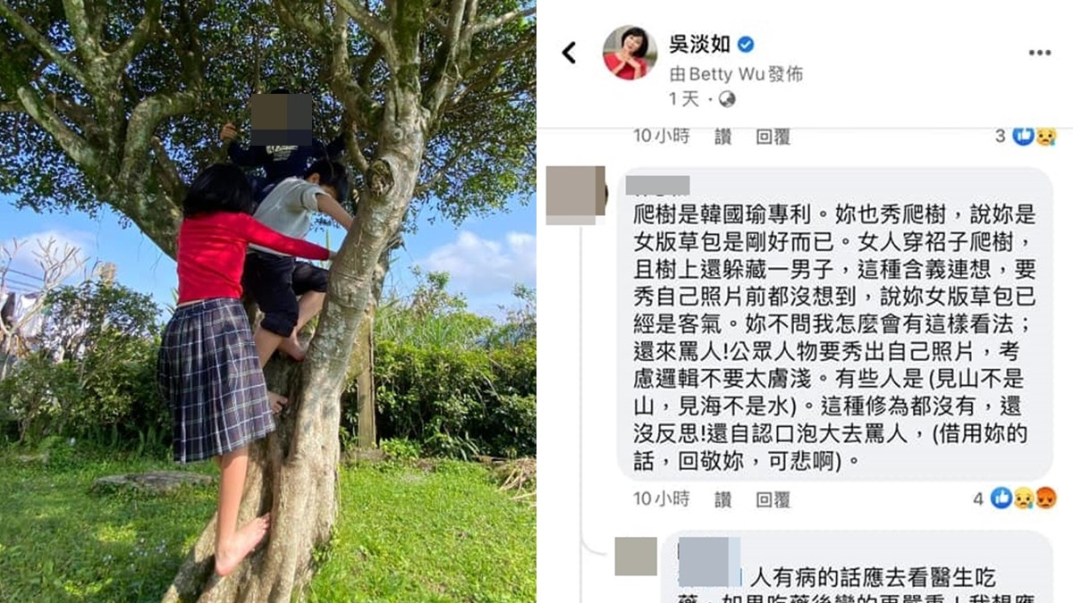 ▲酸民無理謾罵吳淡如女兒爬樹。(圖/翻攝自吳淡如臉書)