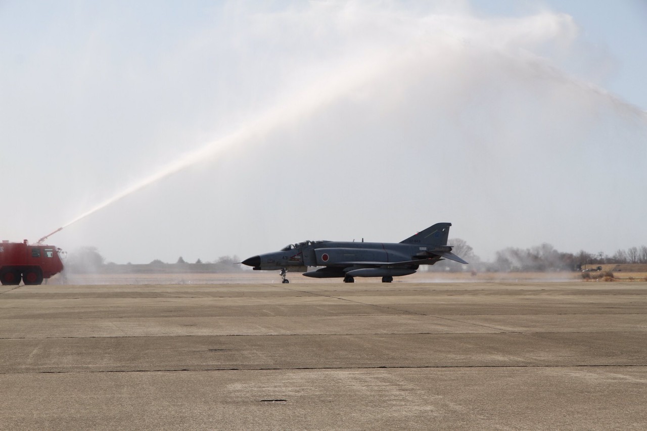 報導指出,這三架F-4EJ隸屬於航空自衛隊飛行開發實驗團(測試聯隊),於當地時間17日上午約9點從岐阜基地起飛,飛行時間約30分鐘,降落後,基地消防車以交叉水柱慶賀,完成任務的飛行員也對「幽靈」表達「長久以來辛苦了」、「幽靈最讚」等感謝,並將酒澆在戰機雷達罩上。
