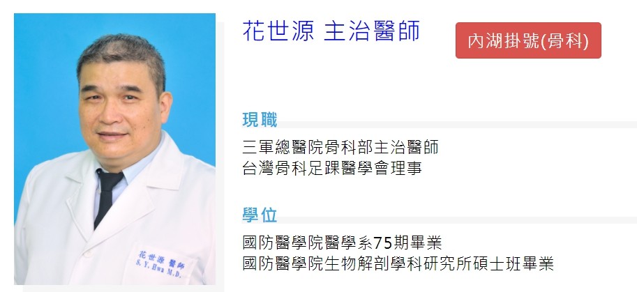 ▲時常受訪分享知識的骨科名醫花世源,驚傳外遇同院女醫產子,元配已向法院訴離。(圖/翻攝三軍總醫院官網)