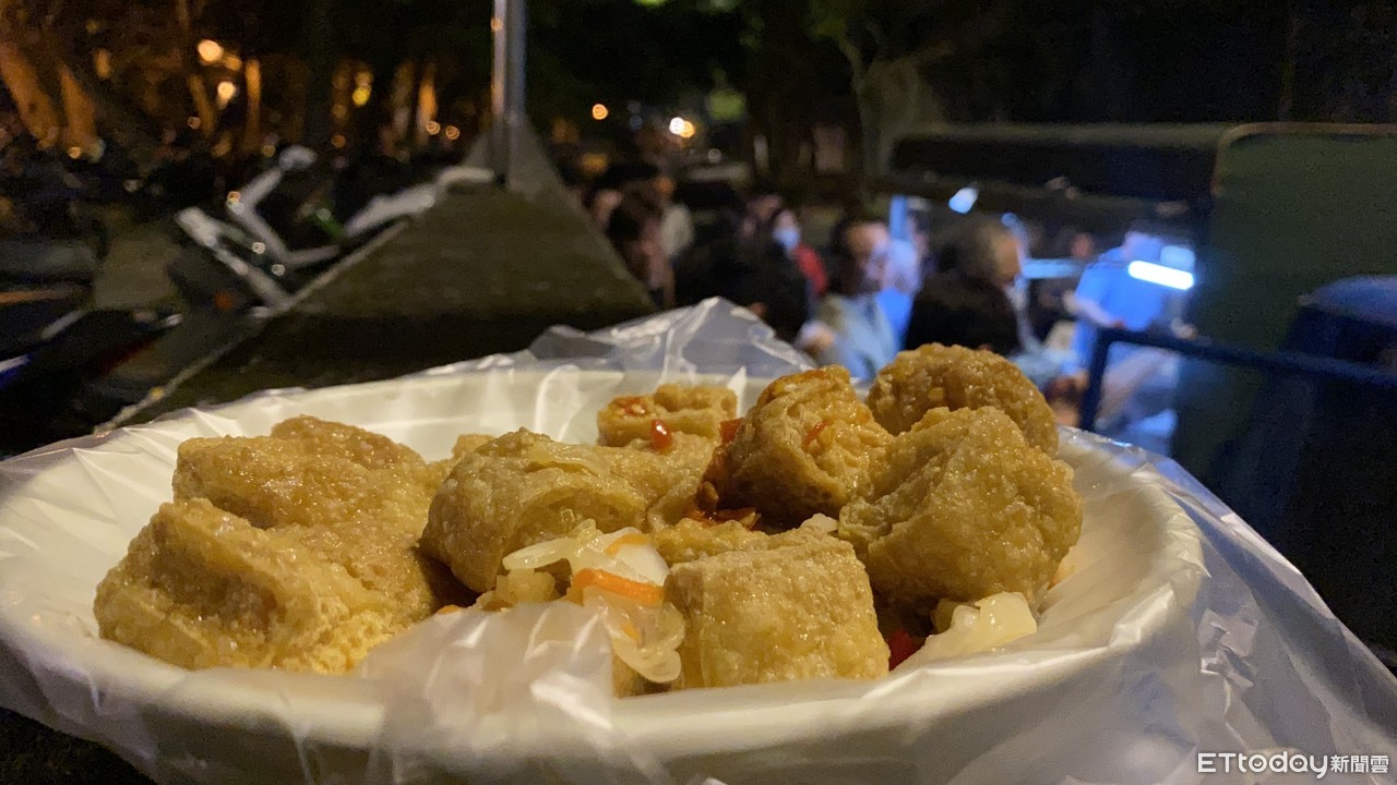 為瞭解臭豆腐受歡迎的程度,《ETtoday新聞雲》記者週五晚間9時許,前往公館商圈附近查找,發現路邊有輛攤車旁圍滿人群,而老闆就在攤車前專心炸起臭豆腐,從塑膠籃內拿出發酵完成的臭豆腐,放入高溫油鍋中炸成金黃色,撈起後加入醬料、泡菜,一道味道濃郁,入口美味的臭豆腐就完成了。