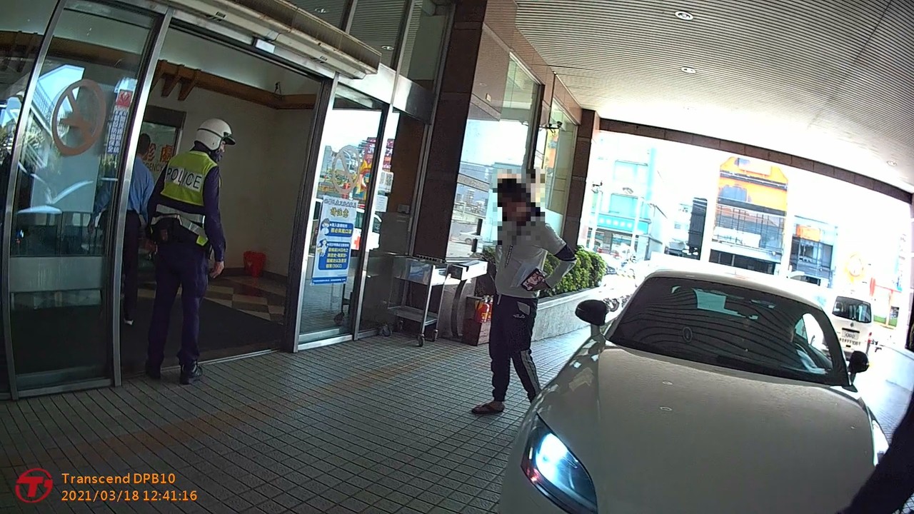 國光派出所警員施銘展、邱依純18日上午接獲徐姓女子報案,指她哥哥傳簡訊告知有輕生念頭,家人非常擔心,請求協尋,員警運用車輛行跡系統與手機定位,確認人在轄區內,資深男警施銘展憑藉從警20多年的經驗,研判可能會開去汽車旅館。
