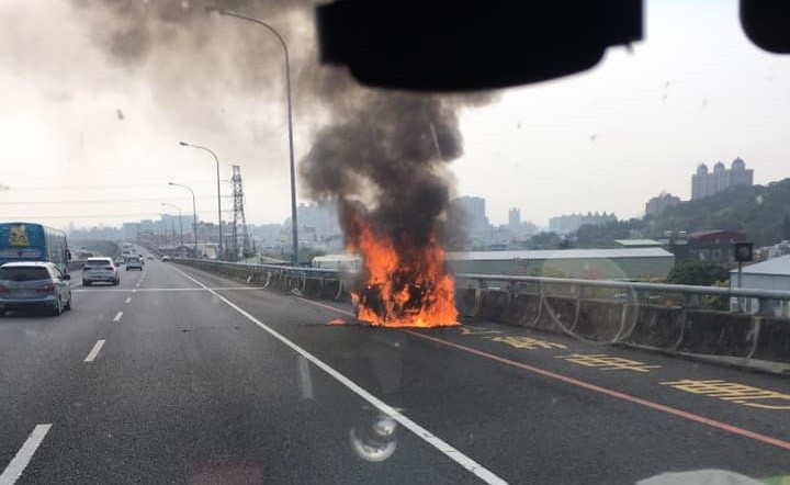 ▲五楊高架火燒車。(圖/翻攝臉書社團「蘆竹南崁資訊大小事社團」)